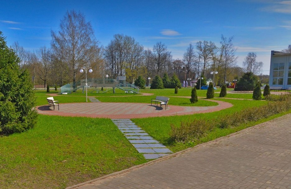 На территории уложены уютные тропинки для удобного передвижения, вдоль которых расставлены скамейки для отдыха. Завораживающий арт-объект "Стеклянная радуга" служит ярким акцентом, придающим пространству особую атмосферу.